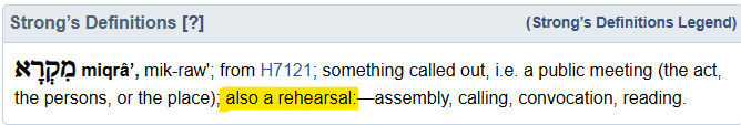 Notice here, the word convocations – it can mean a lot of things: Calling, assembly, reading – but it can also mean a rehearsal. Israel is called to practice for something.